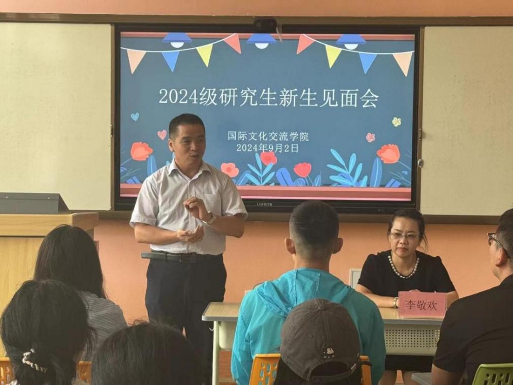在新生见面会上,邓新副院长介绍了学院国际中文教育专业的历史和成就,结合个人读博经验对研究生提出了要求和希望。李敬欢副院长围绕人才培养方案介绍了读博、读研期间的主要环节和时间安排。刘伟乾副院长结合学院具体工作情况,鼓励研究生要结合实践强化学术思维和研究训练,培养国际视野,努力提升个人综合素质。