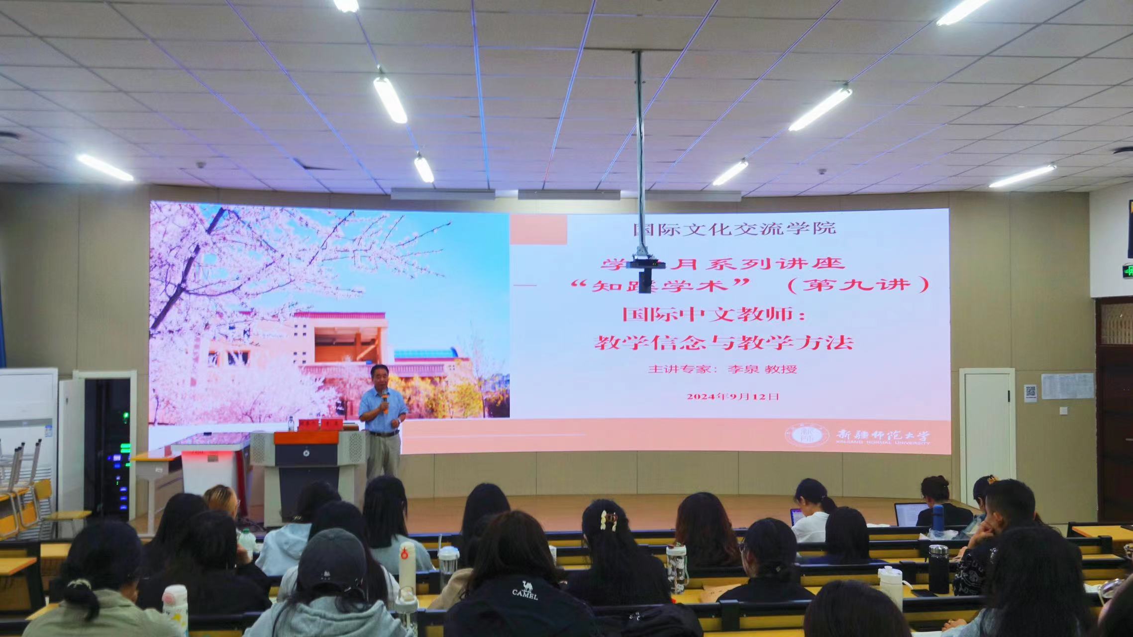 9月12日,永利yl23411集团系列学术讲座——“知蹊学术”(第九讲)在温泉校区4号教学楼118室顺利举办。学院邀请中国人民大学李泉教授做了题为《国际中文教师:教学信念与教学方法》的专题讲座。学院老师和全体硕士研究生聆听了此次讲座。讲座由学院副院长邓新主持。