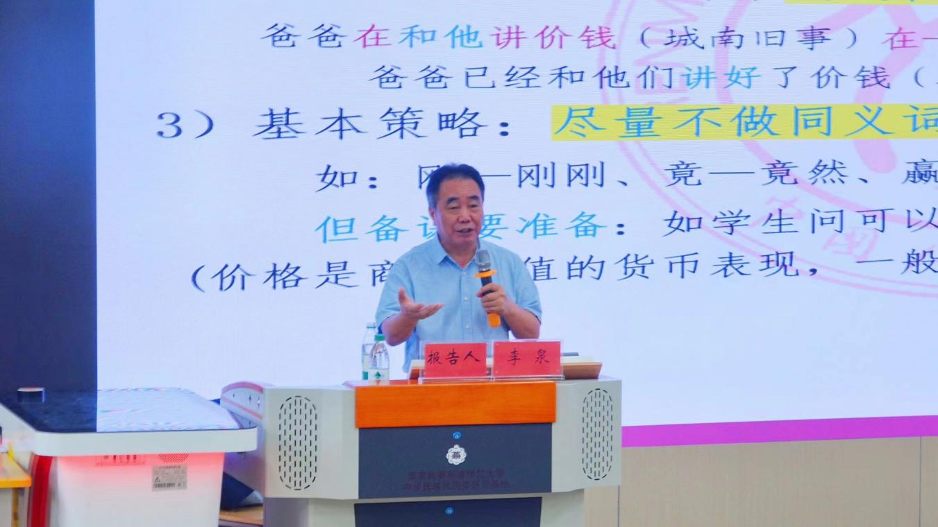 讲座中,李泉教授生动形象地介绍了汉语教师应具备的教学信念,指出了教学信念的重要性,并强调教学信念直接影响教师的教学行为和教学效果。李泉教授在例证教学信念对教学有着全面影响的基础上,还结合具体实例分别讨论了汉语教师应具备的目标观、语言观、学生观、教师观、方法观、文化观等信念,从不同维度讲授教学信念与教学方法的密切关系。李泉教授鼓励师生应在实践中积极探索体现汉语特点及教学规律的教学理念与实践路径。
