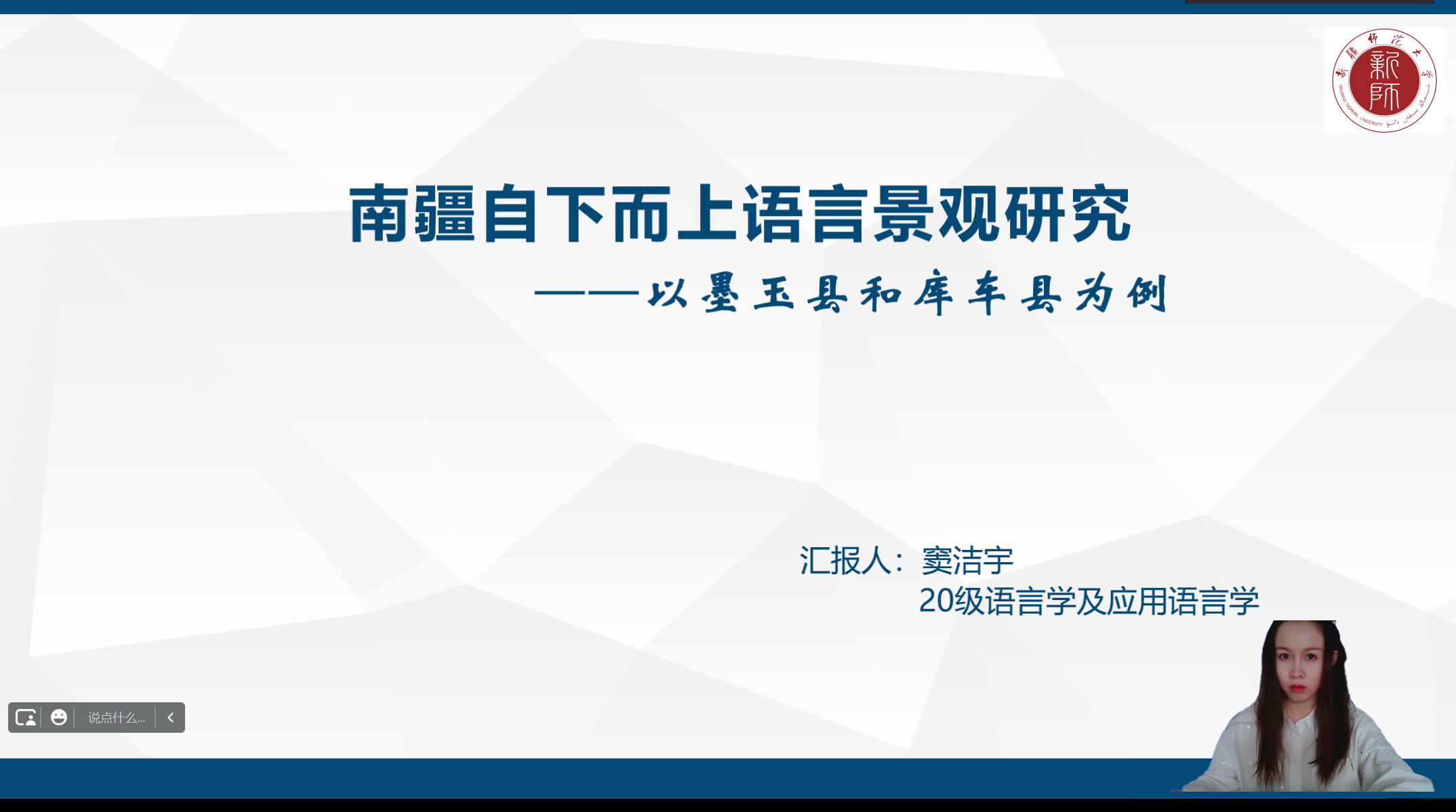 4月16日,yL23411永利第十八届“挑战杯”大学生课外学术科技作品竞赛校级决赛在温泉校区后勤楼二楼报告厅圆满结束。我院推荐了四项挑战杯项目,其中两项进入校级决赛,经过层层选拔,2020级语言学及应用语言学专业研究生窦洁宇同学表现出色,她的参赛作品《南疆自下而上语言景观研究——以墨玉县和库车县为例》获得此次比赛哲学社会科学类二等奖。