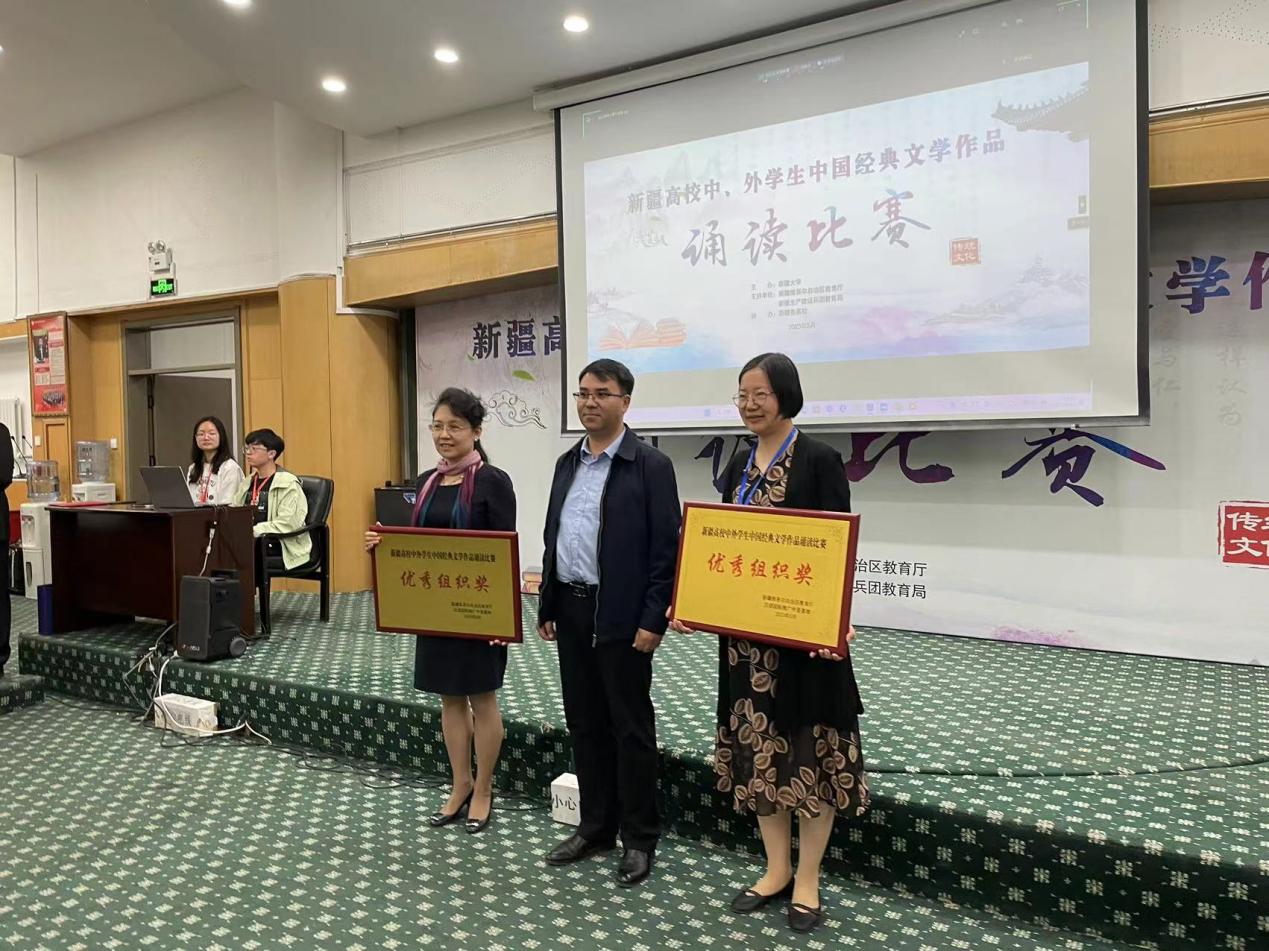 5月13日,由自治区教育厅中亚汉推基地和新疆大学主办的新疆高校中外大学生中国经典文学作品诵读比赛在新疆大学举行,我院汉语国际教育专业2022级1班学生杨雨琪、留学生系汉语国际教育专业硕士班学生欧斯曼扎诺娃·玛丽卡姆( OSMANZHANOVA MALIKAM)分别斩获中国学生组和国际学生组一等奖,yL23411永利获得优秀组织奖。