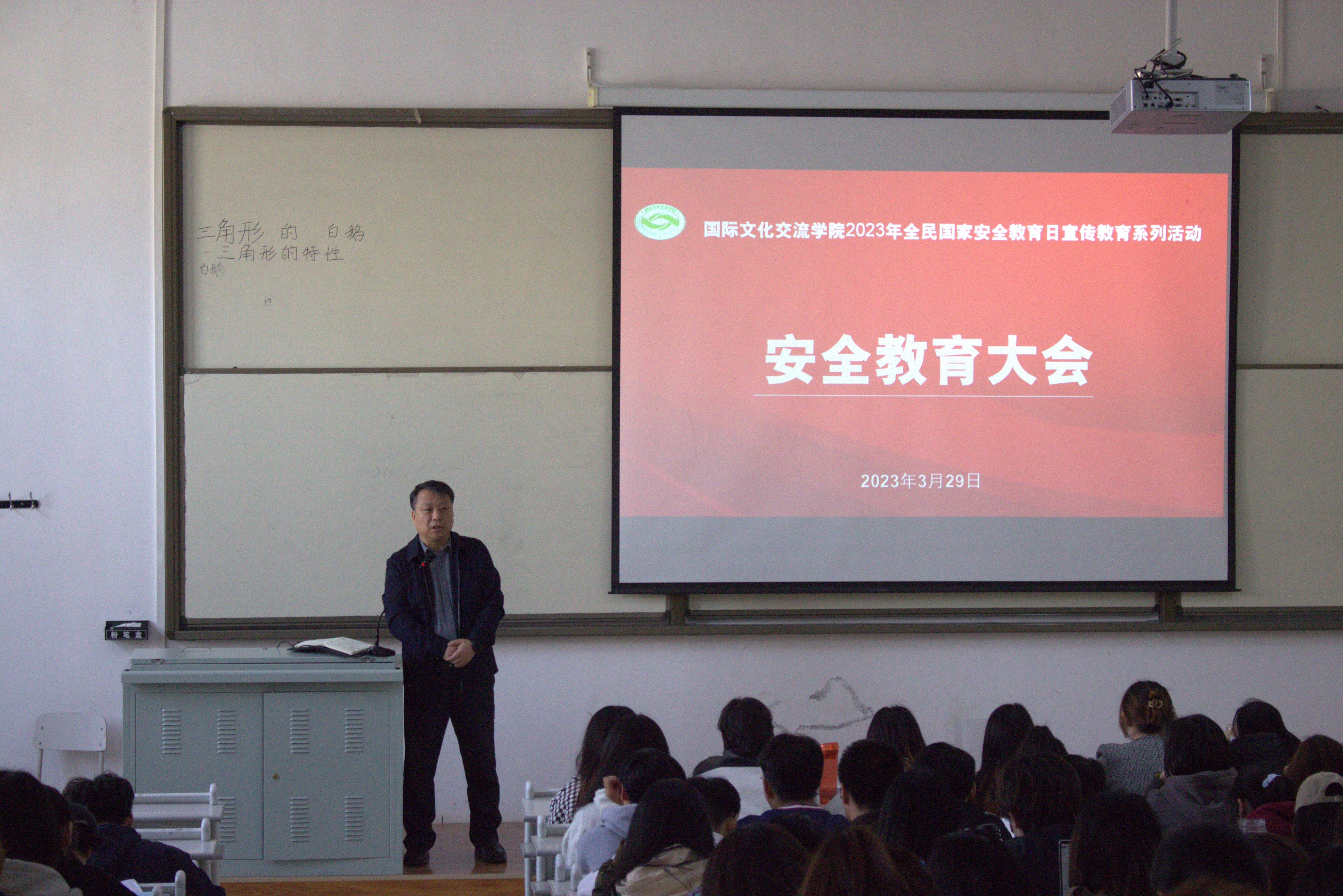 为进一步构建和营造和谐安全的校园环境,不断增强我院大学生的国家安全意识,自觉履行维护国家安全责任,3月29日下午,永利yl23411集团在3号教学楼106教室召开了2023年全民国家安全教育日宣传教育系列活动之安全教育大会。学院特邀请了我校派出所法制辅导员马雷刚警官为同学们做宣传教育讲座,我院党委书记李嘉东、院辅导员以及全体学生参会。