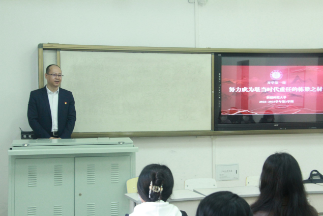 首先,李嘉东书记向同学们介绍了关明常委的成长历程及在学术上所取得的成绩,拉近了关常委与同学们间的情感距离。接着,关常委为同学们上了开学第一课。关常委结合自己的工作学习经历,深入浅出,为同学们讲解了习近平新时代中国特色社会主义思想的深邃内涵,并推荐了《习近平的七年知青岁月》,希望同学们做好马克思主义中国化的时代传播者,做好中国共产党精神谱系的传承者,努力成为堪当时代重托的栋梁之才。