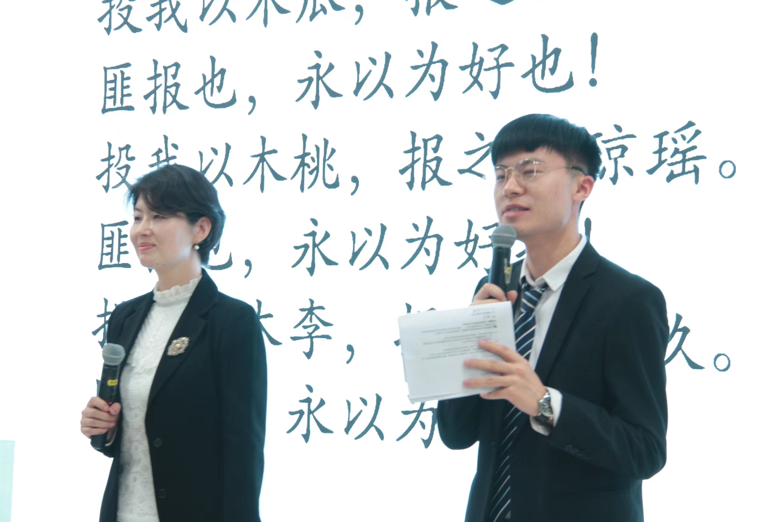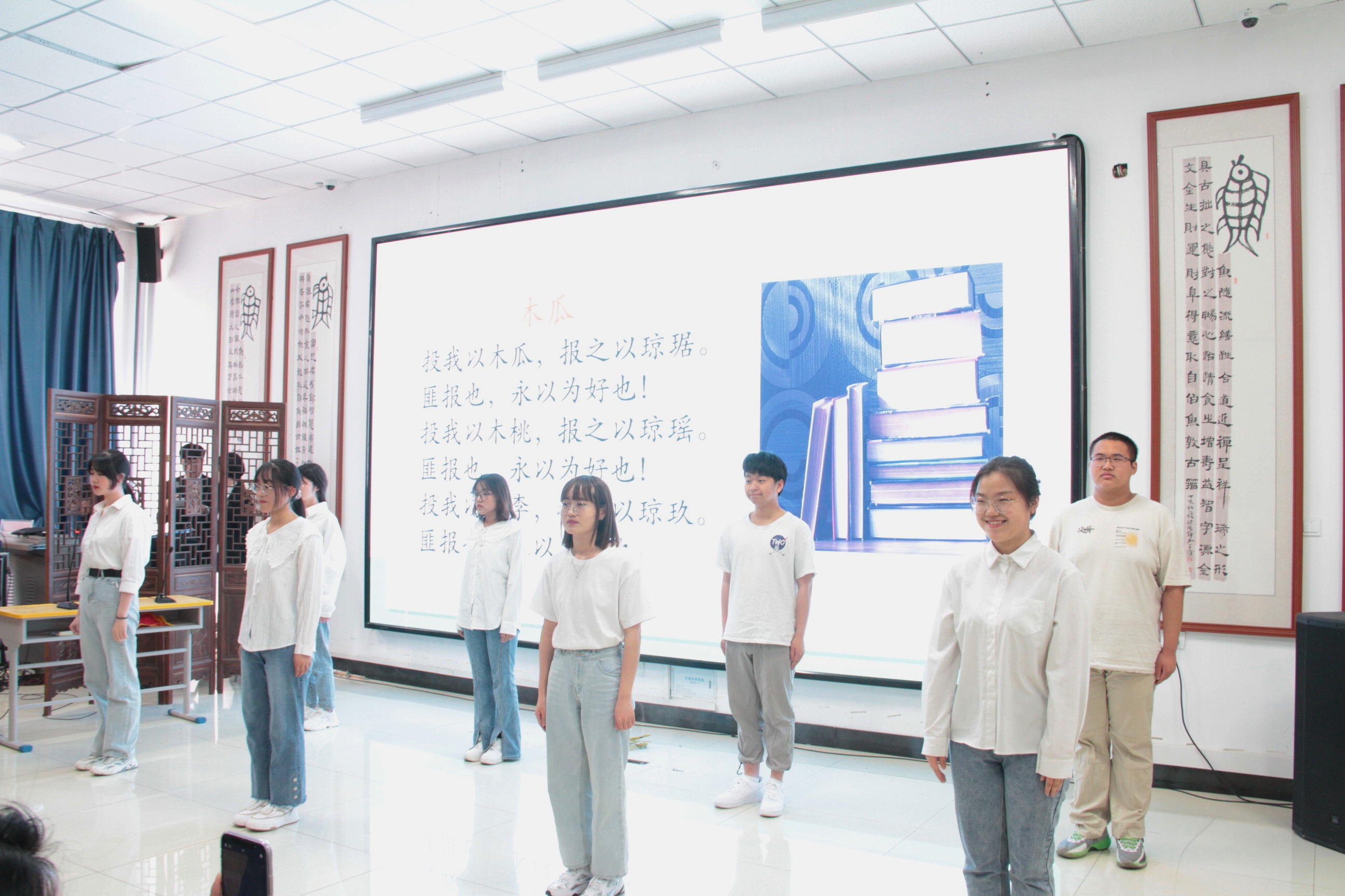 学院吟诵社的同学们吟诵了《木瓜》,留学生通过线上分享了她朗读的《静夜思》。在“师生共读一本书”中,班主任李娜老师带领同学们共读《从豪华落尽见真淳,论陶渊明之“任真”与“固夯”》,最后张桂梅校长朗读的《红岩》视频节选以及全体师生共读诗人艾青的《我爱这土地》,将读书会推向了高潮。