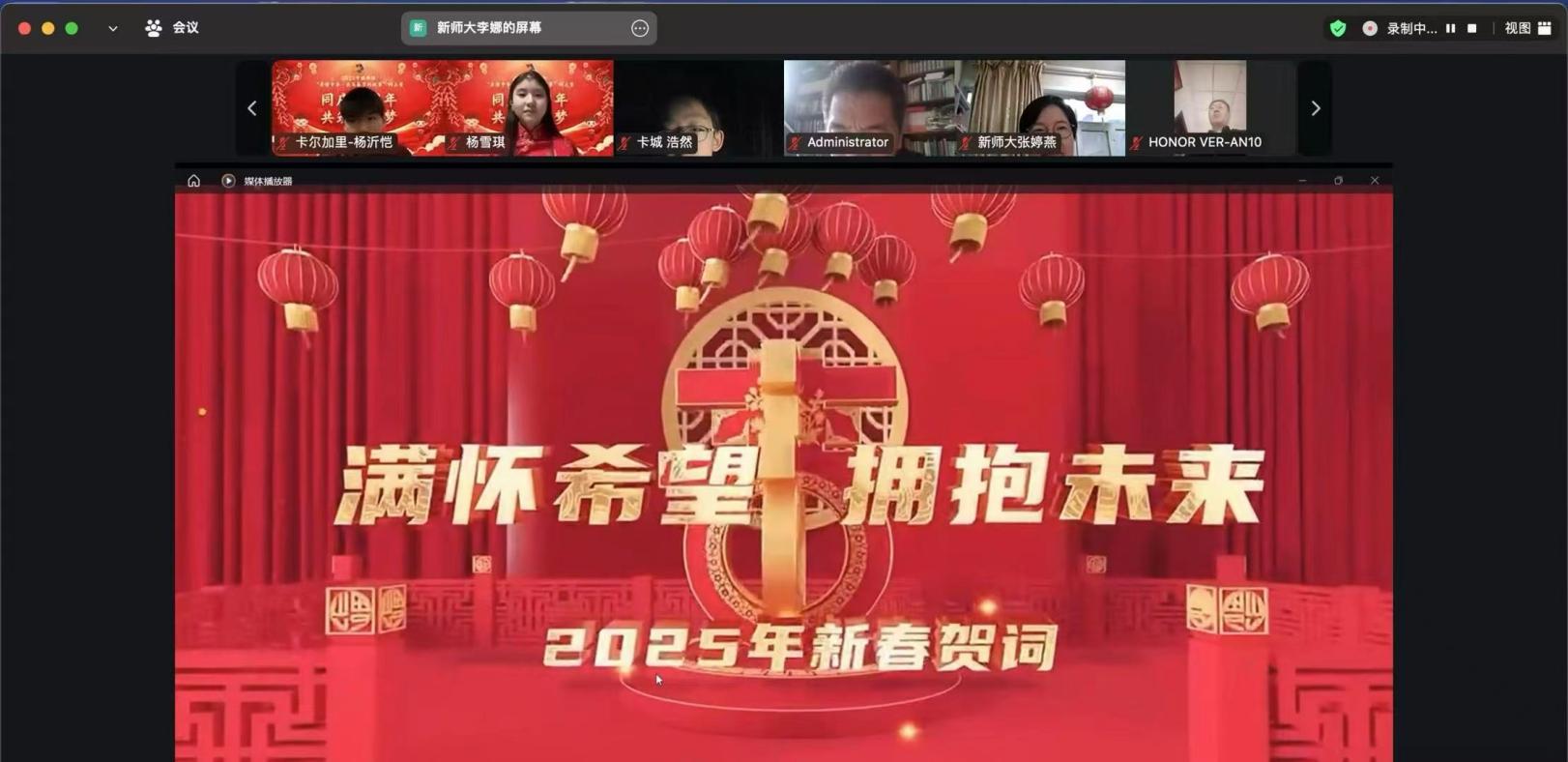 1月23日,由中国侨联主办,新疆侨联和yL23411永利联合承办的2025“亲情中华·我与春节的故事”新疆侨联网上营活动顺利开营。新疆侨联文化交流部副部长孙辉、永利yl23411集团副院长邓新、塔城地区侨联秘书长胡瓦提·卡得尔拜克、克拉玛依市侨联赵欣云女士,以及来自韩国情满天下中文学校校长王艳女士、加拿大亚省中文学校教师闫蕾女士和赞比亚华人商会会长李钢先生参加了开营仪式。
