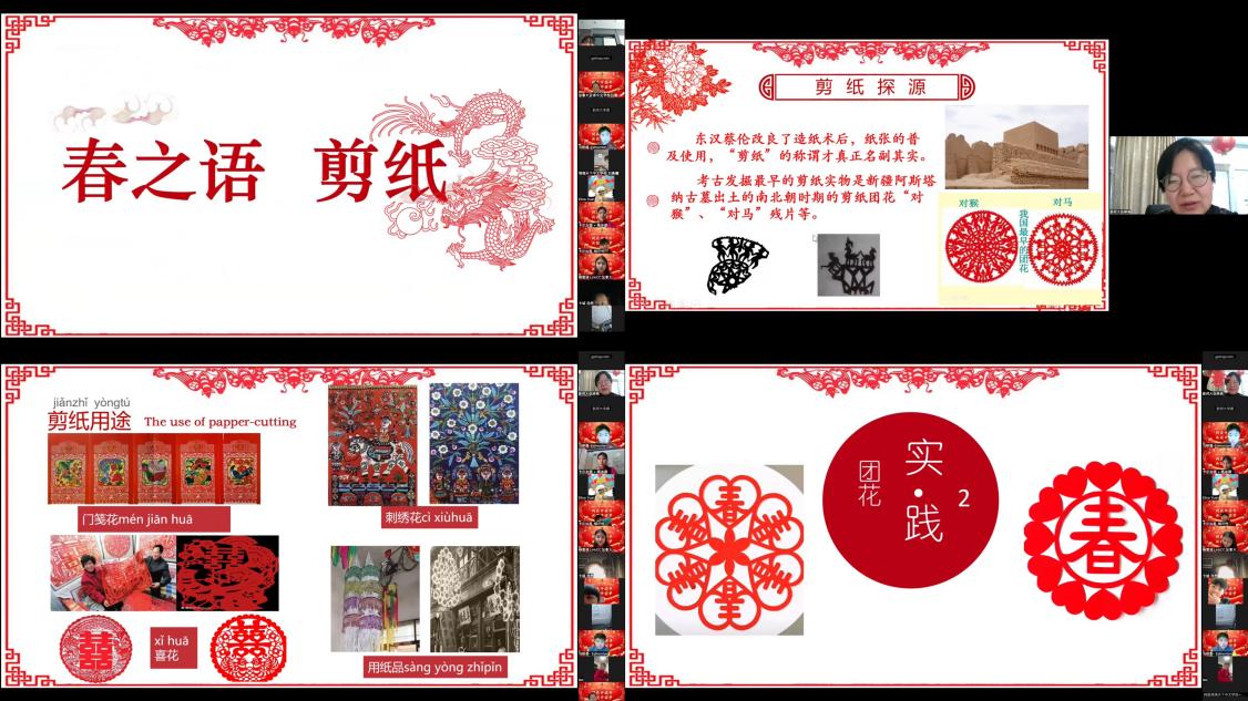 学院教师在开营第一课中讲授《中国剪纸艺术》