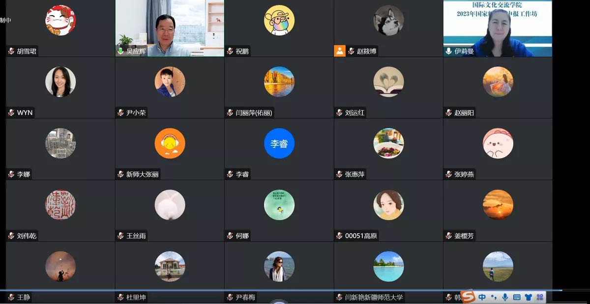 为全力做好2023年度国家社科基金项目申报工作,着力提升学院教师科研能力与水平,11月25日下午,学院组织召开了2023年国家社科基金申报专家指导工作坊线上会。本次会议专程邀请了我校天池学者北京语言大学吴应辉教授来指导课题申报工作,院长伊莉曼·艾孜买提主持会议。