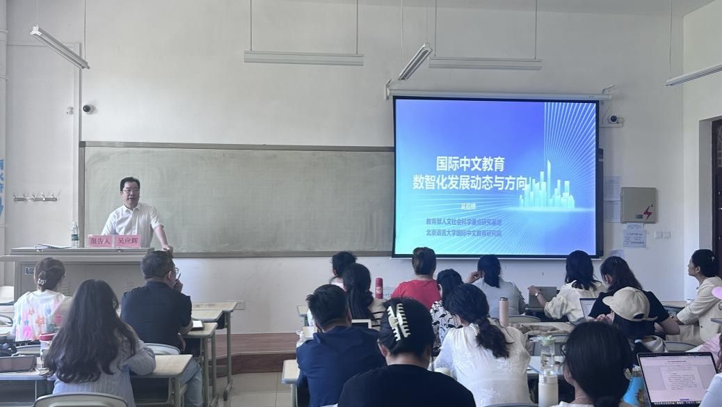 讲座,吴应辉教授技术发展、政策支持、范式变革、需求变化等方面详细阐述了数智化技术国际中文教育领域带来的影响与革新,指出人工智能、大数据、虚拟现实等技术正深度融入中文教学,推动教学模式从“统一化教学”到“个性化学习”,从“单向传授”到“智能交互”转变。吴应辉教授就基础设施不均衡数字教育资源分散及师生数字素养差异大现实问题分析其成因并提出相应策略。