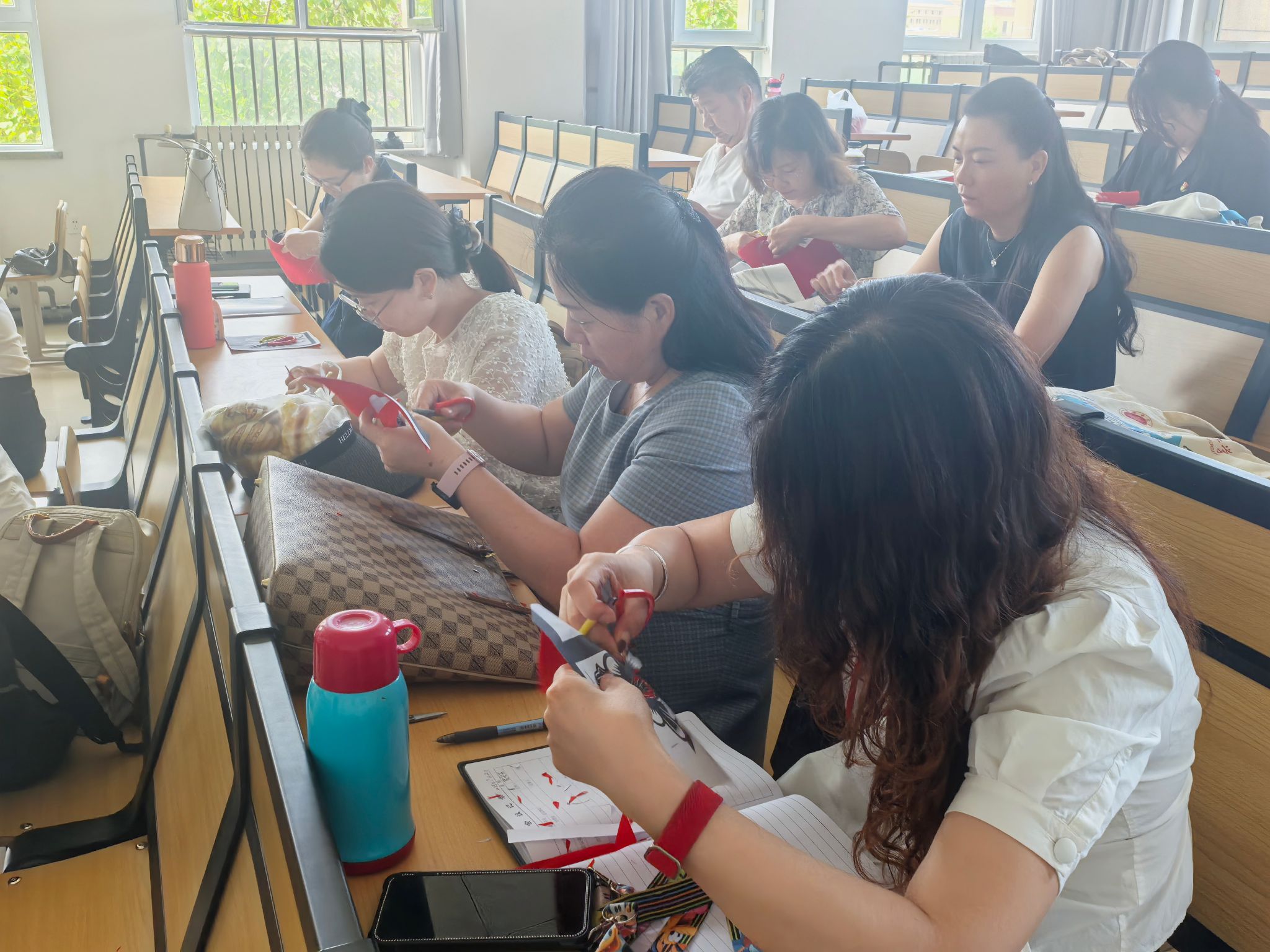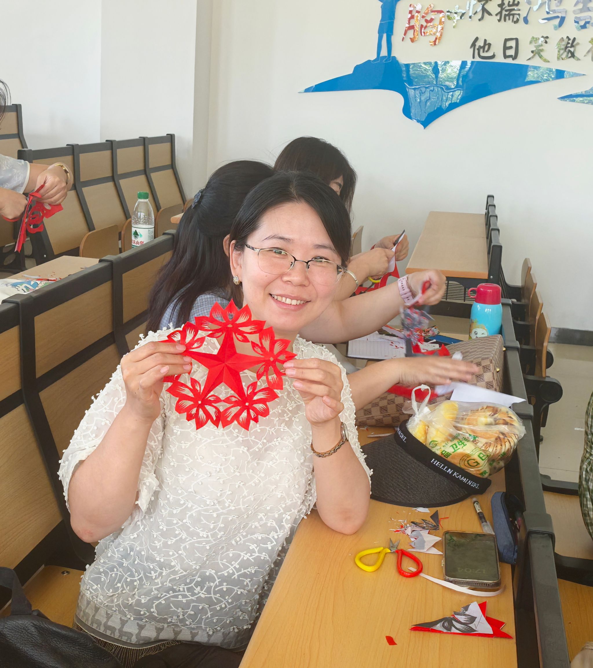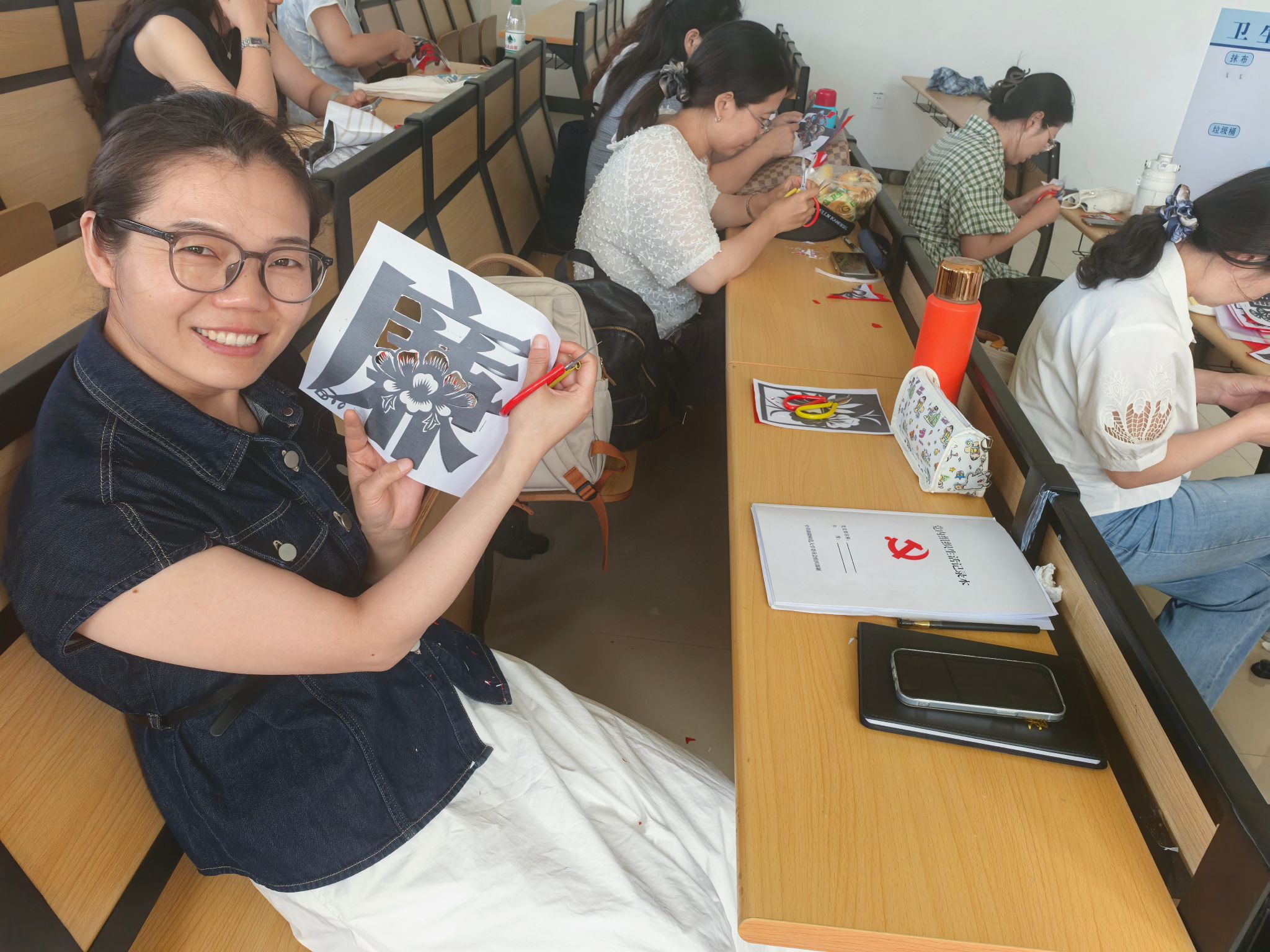 作为党风廉政教育月特色活动,支部创新开展“剪廉韵·守初心”非遗剪纸体验。在张婷燕老师指导下,党员教师以“廉”字为核心创作元素,将传统剪纸技艺与廉洁文化有机融合,在方寸红纸间裁出寓意深刻的廉政作品。活动现场,艺术创作与廉洁教育相得益彰,党员教师在交流剪纸技法中深化对“廉洁从教”内涵的理解,在非遗传承中筑牢拒腐防变思想防线。