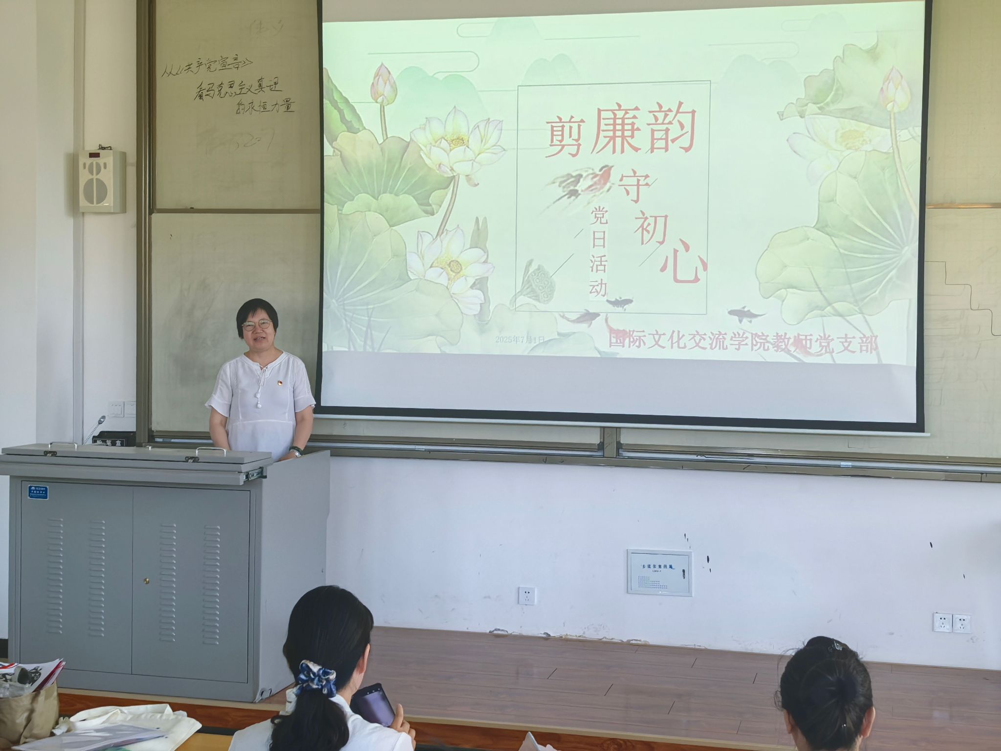 7月2日下午,国际文化交流学院教师党支部在正学楼112教室举办“迎七一·强党性·担使命”主题党日暨党风廉政教育月活动,支部全体党员参加。活动通过理论学习、榜样引领、实践润心的方式,推动党性教育走深走实。