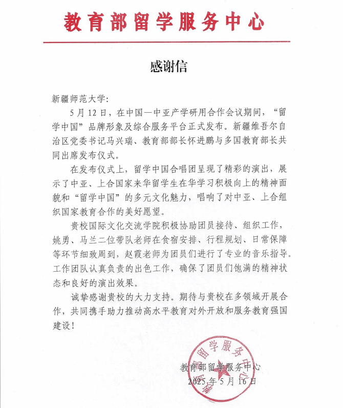 教育部留学服务中心表扬信